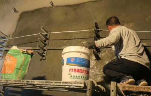 3、渗漏位置喷涂YYA防水抗渗浆料1遍,保证大面积不漏水